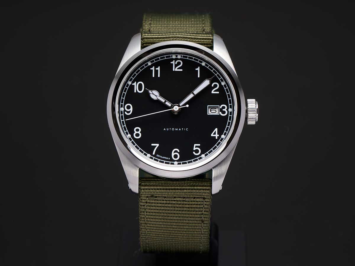 SeiyaJapan Miyota 9015 Automatic Watch - 38mm Black Dial Field Watch A type